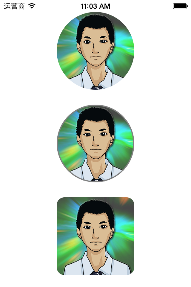 思路:使用view的layer属性,通过设置cornerRadius来设置圆角的半径,当view是正方形同时圆角为边长一般时形成圆形的头像。