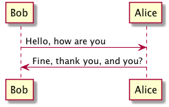 Bob -> Alice : Hello, how are you